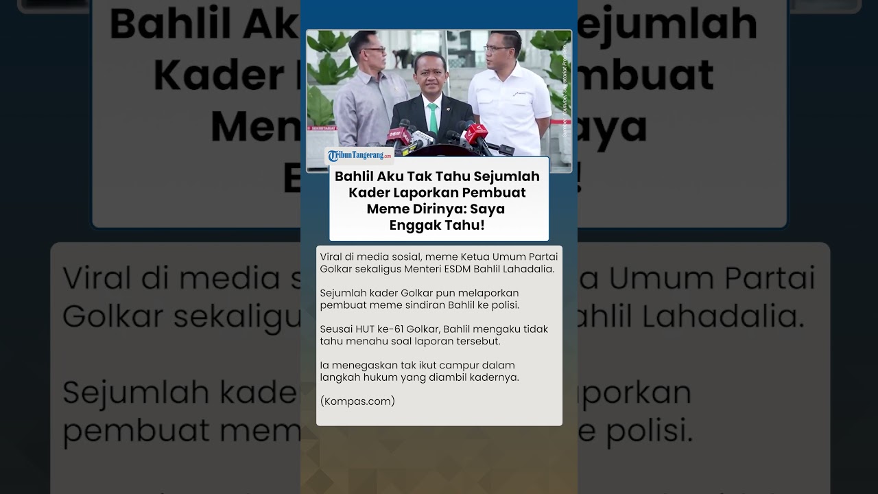 TRIBUN-VIDEO.COM - Ketua Umum Partai Golkar Bahlil Lahadalia mengaku tidak mengetahui ada sejumlah kadernya yang melaporkan akun media sosial pembuat dan penyebar meme yang menyerang dirinya.