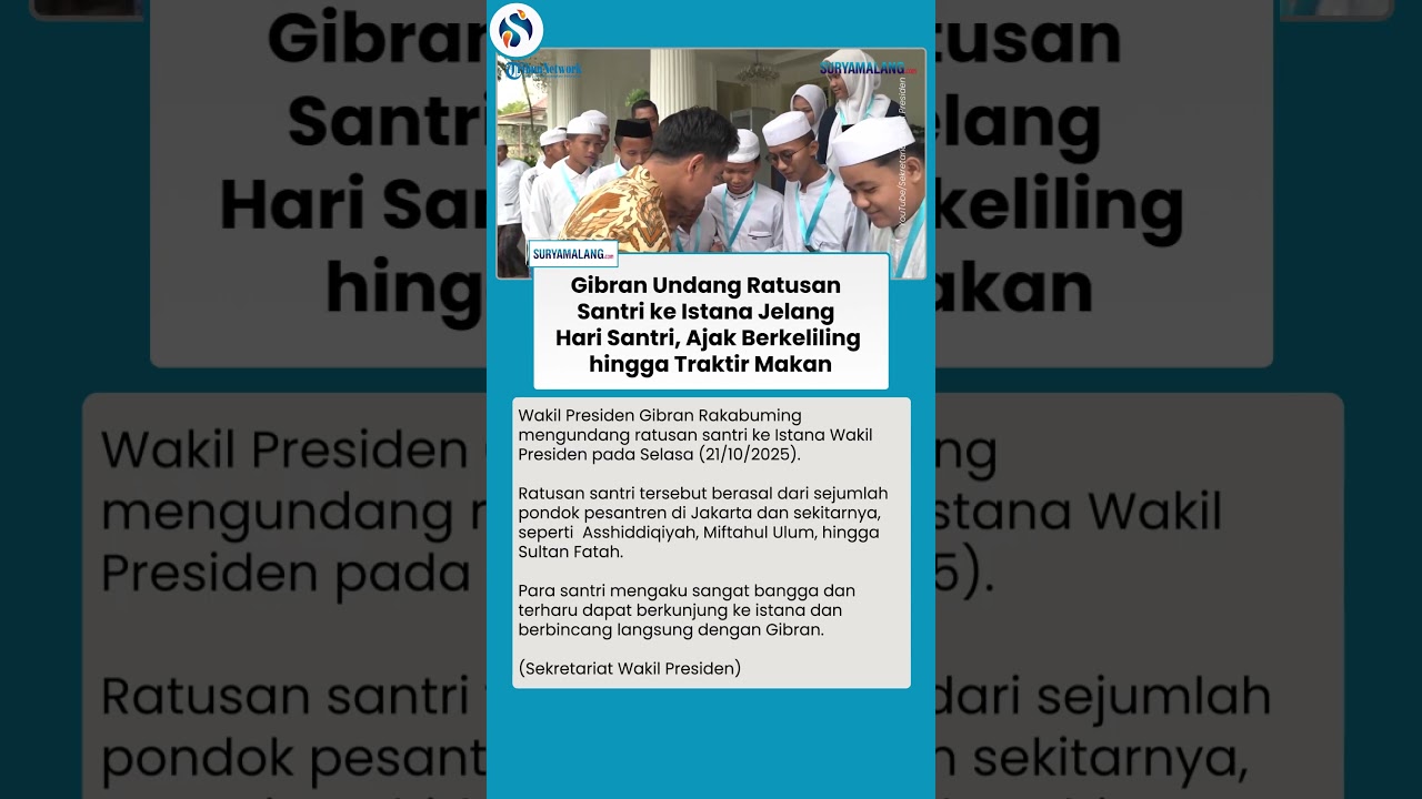 TRIBUN-VIDEO.COM - Wakil Presiden Gibran Rakabuming mengundang ratusan santri ke Istana Wakil Presiden pada Selasa (21/10/2025).