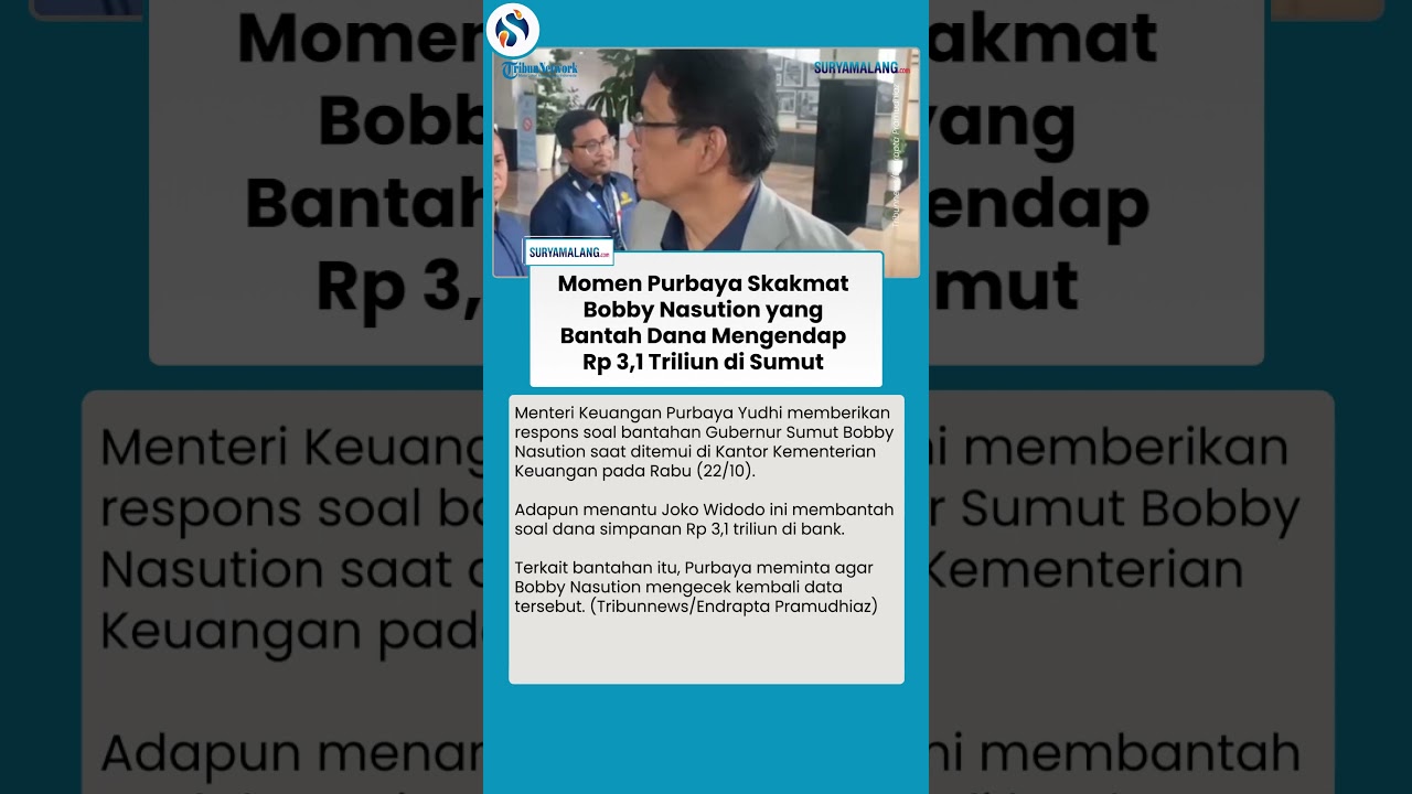 TRIBUN-VIDEO.COM - Menteri Keuangan Purbaya Yudhi memberikan respons soal bantahan Gubernur Sumut Bobby Nasution saat ditemui di Kantor Kementerian Keuangan pada Rabu (22/10).
