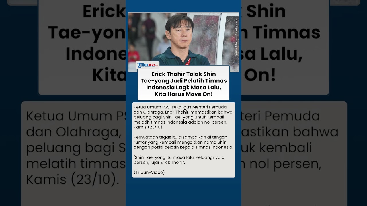 "Shin Tae-yong itu masa lalu. Peluangnya 0 persen," ujar Erick Thohir. (Tribun-Video)
