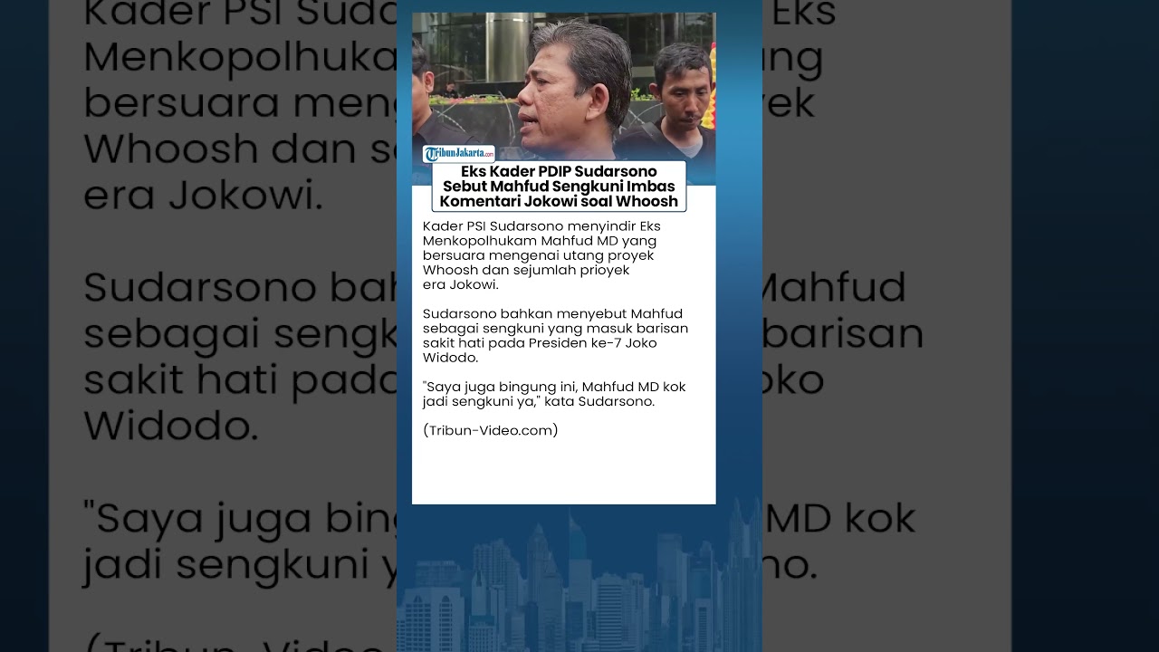TRIBUN-VIDEO.COM - Kader PSI Sudarsono menyindir Eks Menkopolhukam Mahfud MD yang bersuara mengenai utang proyek Whoosh dan sejumlah prioyek era Jokowi.