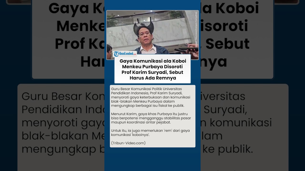 TRIBUN-VIDEO.COM - Guru Besar Komunikasi Politik Universitas Pendidikan Indonesia, Prof Karim Suryadi, menyoroti gaya keterbukaan dan komunikasi blak-blakan Menkeu Purbaya dalam mengungkap berbagai isu fiskal ke publik.