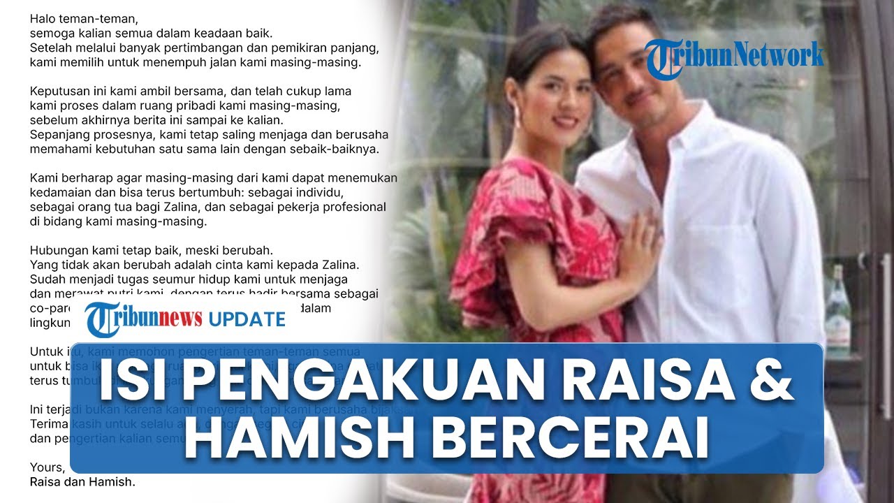 Artikel ini telah tayang di Tribunnews.com dengan judul Raisa dan Hamish Daud Akhirnya Buka Suara soal Perceraiannya: Keputusan Ini Kami Ambil Bersama