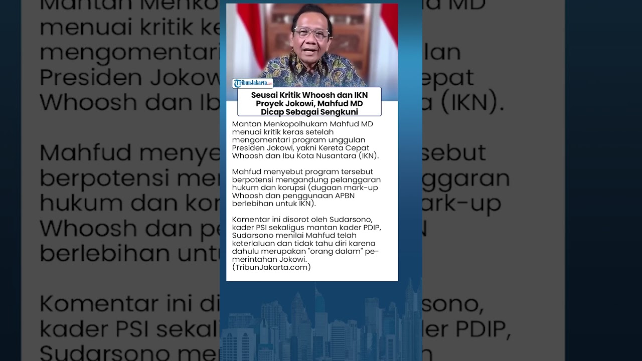 TRIBUN-VIDEO.COM - Mantan Menkopolhukam Mahfud MD menuai kritik keras setelah mengomentari program unggulan Presiden Jokowi, yakni Kereta Cepat Whoosh dan Ibu Kota Nusantara (IKN).