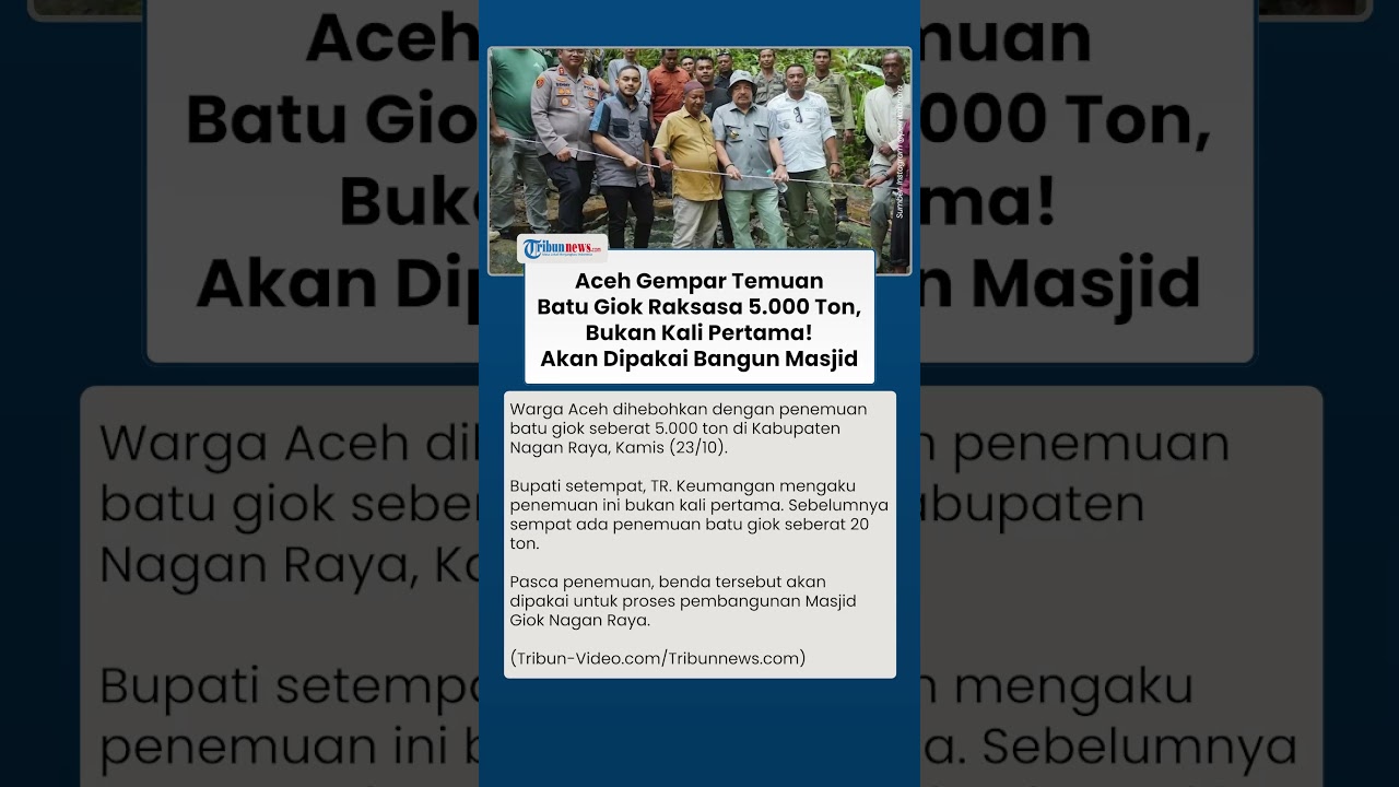 TRIBUN-VIDEO.COM - Warga Aceh dihebohkan dengan penemuan batu giok seberat 5.000 ton di Kabupaten Nagan Raya, Kamis (23/10).