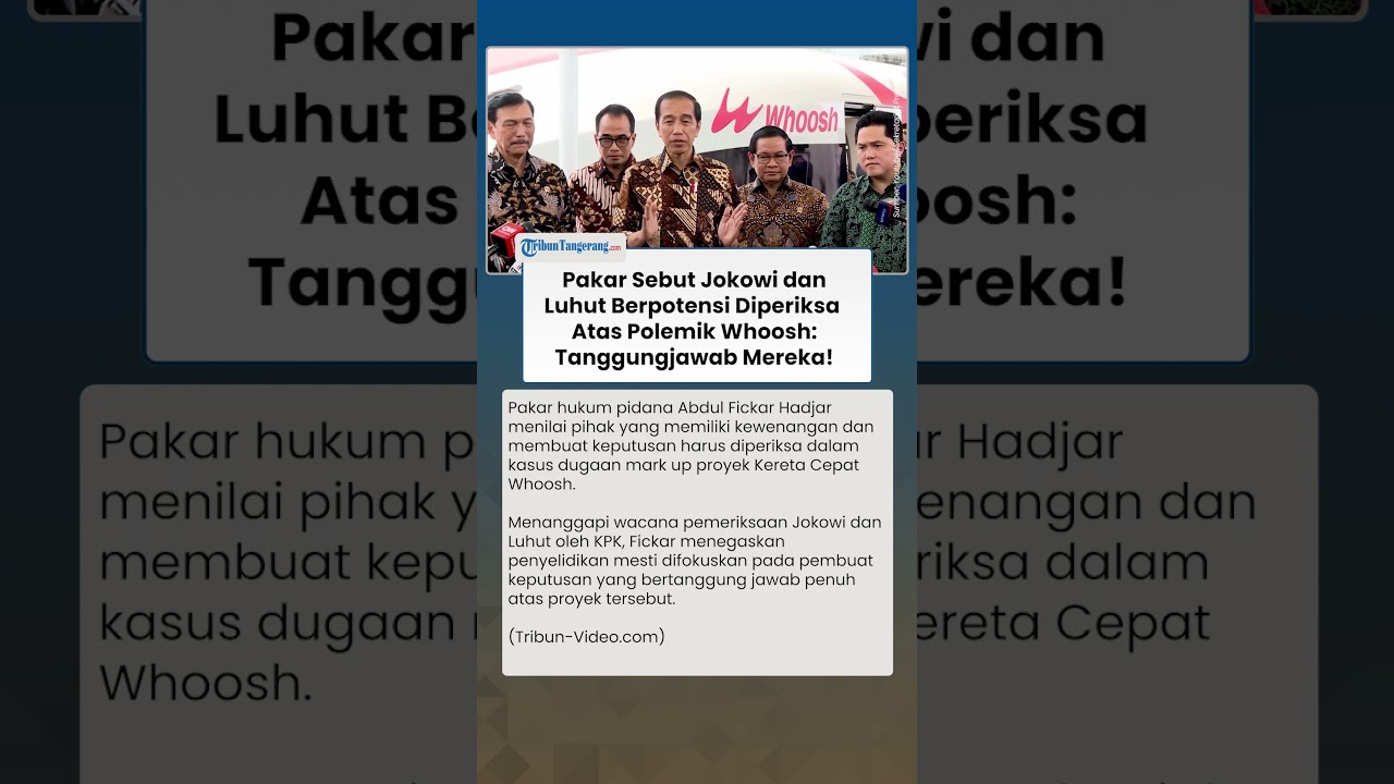 TRIBUN-VIDEO.COM - Pakar Hukum Pidana Abdul Fickar Hadjar menyebut sosok sosok yang berpotensi diperiksa dalam kasus dugaan mark Up proyek Whoosh.