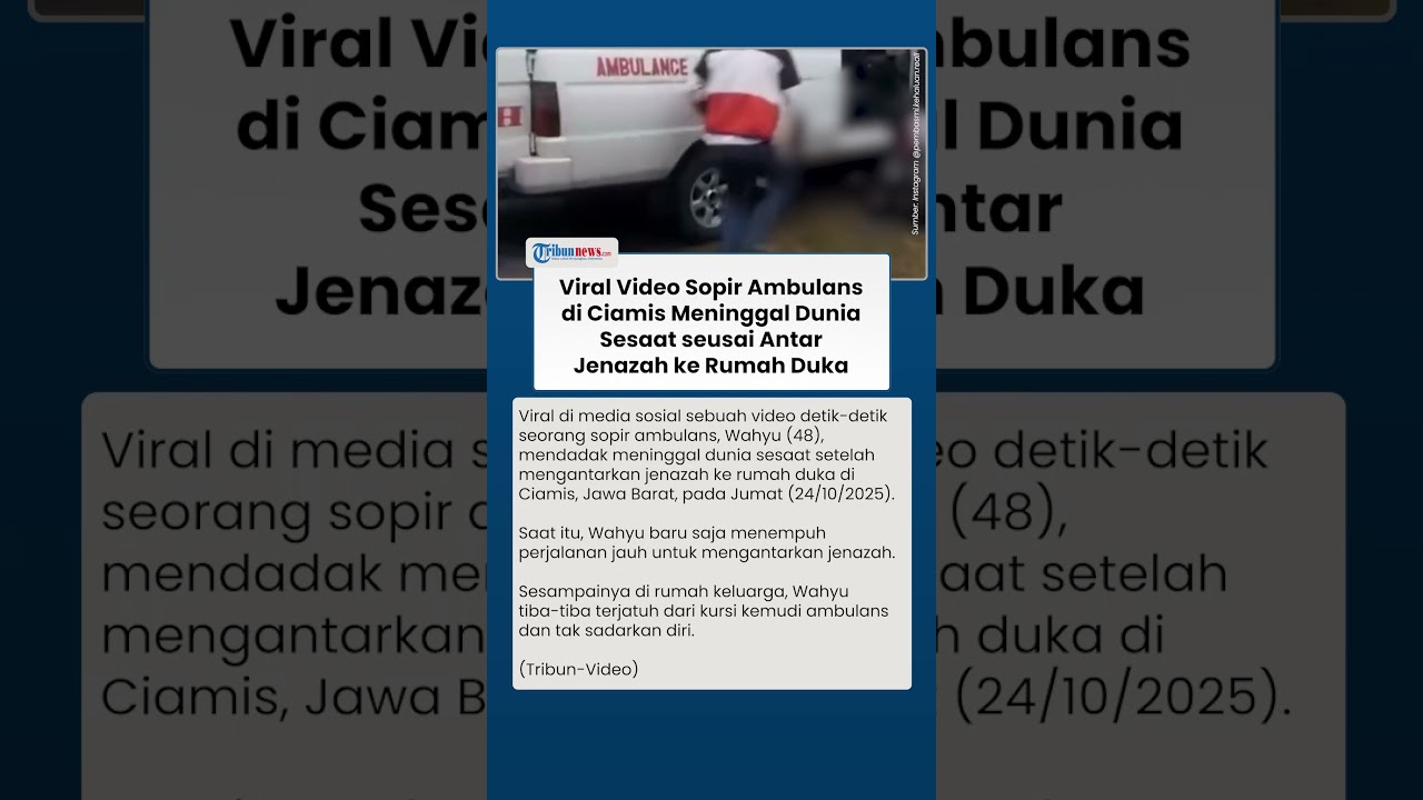 TRIBUN-VIDEO.COM - Viral di media sosial sebuah video detik-detik seorang sopir ambulans, Wahyu (48), mendadak meninggal dunia sesaat setelah mengantarkan jenazah ke rumah duka di Ciamis, Jawa Barat, pada Jumat (24/10/2025).