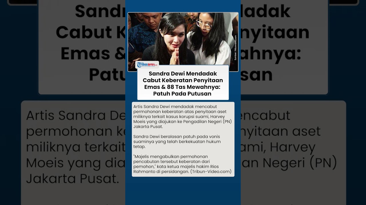 TRIBUN-VIDEO.COM - Artis Sandra Dewi mendadak mencabut permohonan keberatan atas penyitaan aset miliknya terkait kasus korupsi suami, Harvey Moeis yang diajukan ke Pengadilan Negeri (PN) Jakarta Pusat.