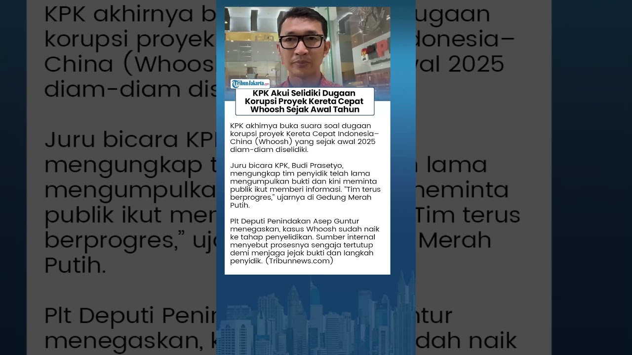 TRIBUN-VIDEO.COM - Komisi Pemberantasan Korupsi (KPK) mengonfirmasi telah melakukan penyelidikan terhadap dugaan tindak pidana korupsi dalam proyek Kereta Cepat Indonesia–China (KCIC) Jakarta–Bandung atau Whoosh sejak awal tahun 2025.
