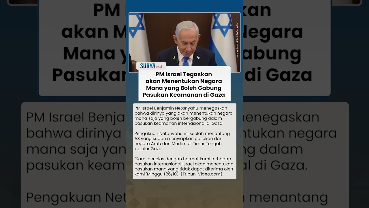 TRIBUN-VIDEO.COM - Perdana Menteri Israel Benjamin Netanyahu menegaskan bahwa dirinya yang akan menentukan negara mana saja yang boleh bergabung dalam pasukan keamanan internasional di Gaza.