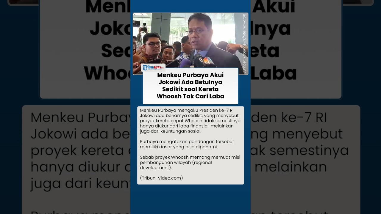TRIBUN-VIDEO.COM - Menkeu Purbaya mengaku Presiden ke-7 RI Jokowi ada benarnya sedikit, yang menyebut proyek kereta cepat Whoosh tidak semestinya hanya diukur dari laba finansial, melainkan juga dari keuntungan sosial.