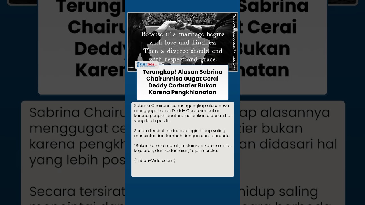 Artikel ini telah tayang di Tribunnews.com dengan judul Sabrina Chairunnisa Ungkap Alasan Gugat Cerai Deddy Corbuzier Bukan karena Pengkhianatan