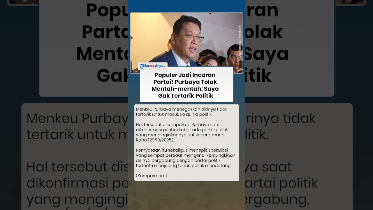 Hal tersebut disampaikan Purbaya saat dikonfirmasi perihal kabar ada partai politik yang menginginkannya untuk bergabung, Rabu (29/10/2025).
