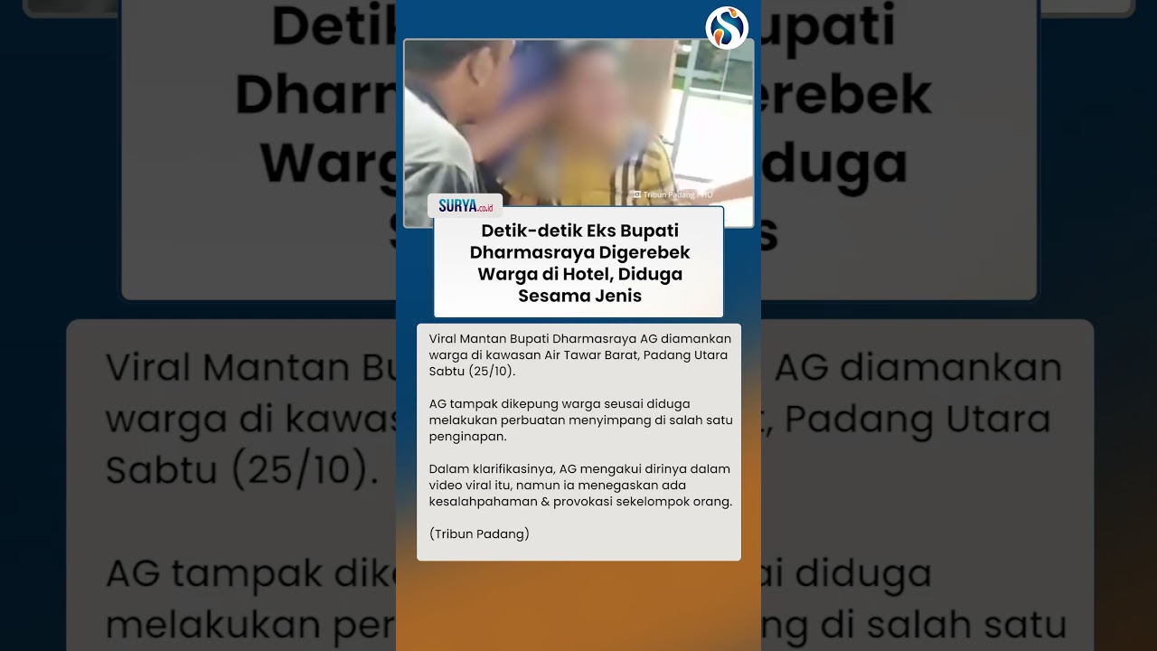Sebelumnya diberitakan, sebuah video yang menarasikan mantan kepala daerah Dharmasraya berinisial AG diamankan warga di Kelurahan Air Tawar Barat, Kecamatan Padang Utara, Kota Padang, Sumatera Barat.