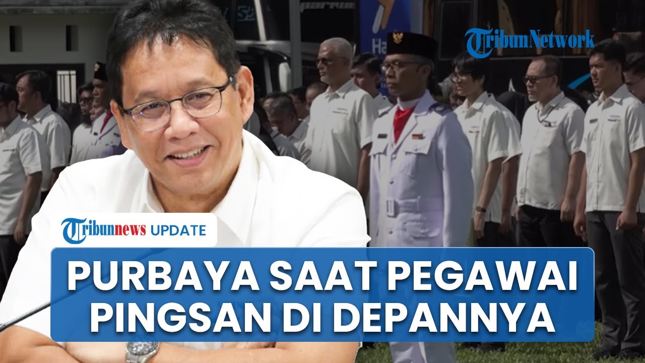 Melihat anak buahnya pingsan, Purbaya mengatakan ia harus menyampaikan amanat upacara dengan cepat.