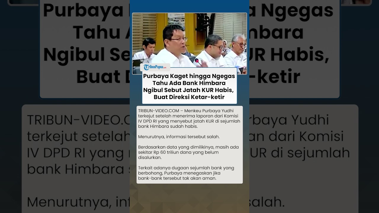 TRIBUN-VIDEO.COM - Menteri Keuangan Purbaya Yudhi Sadewa kaget saat mendapat laporan dari Komisi IV DPD RI yang menyebut jika jatah KUR di sejumlah bank Himbara sudah habis.