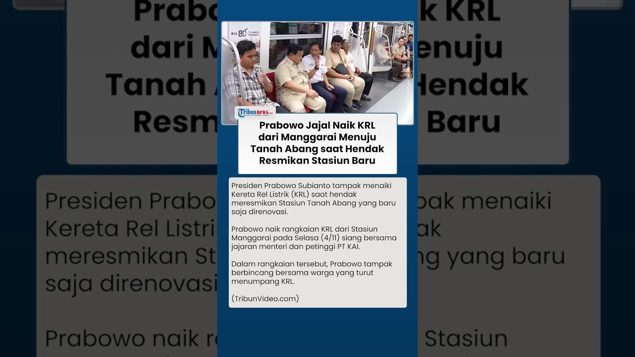 TRIBUN-VIDEO.COM - Presiden Prabowo Subianto tampak menaiki Kereta Rel Listrik (KRL) saat hendak meresmikan Stasiun Tanah Abang yang baru saja direnovasi.