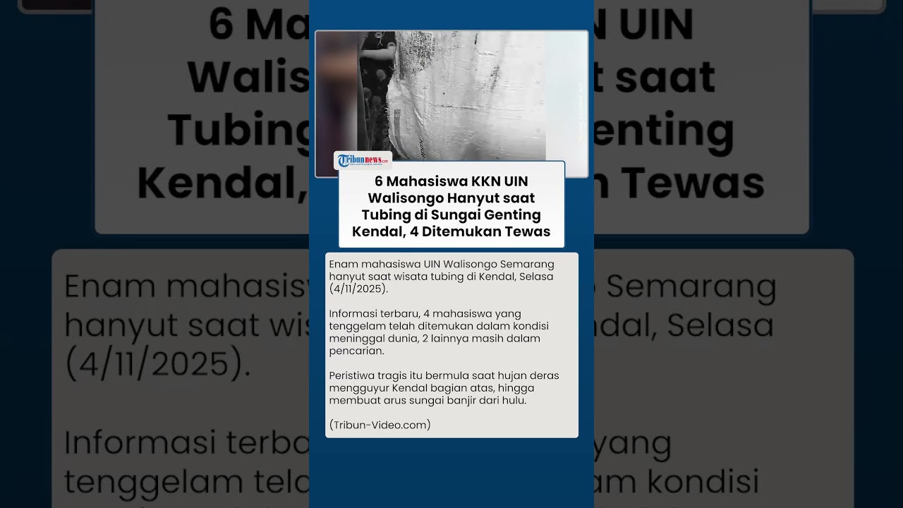 TRIBUN-VIDEO.COM - Enam mahasiswa UIN Walisongo Semarang hanyut saat wisata tubing di Kendal, Selasa (4/11/2025).
