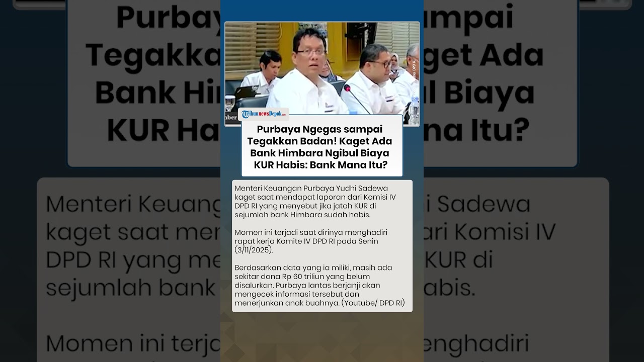 TRIBUN-VIDEO.COM - Menteri Keuangan Purbaya Yudhi Sadewa kaget saat mendapat laporan dari Komisi IV DPD RI yang menyebut jika jatah KUR di sejumlah bank Himbara sudah habis.