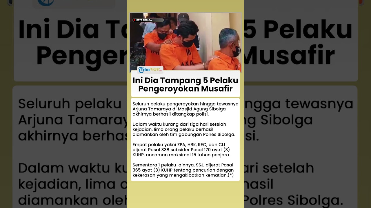TRIBUN-VIDEO.COM - Seluruh pelaku pengeroyokan hingga tewasnya Arjuna Tamaraya di Masjid Agung Sibolga akhirnya berhasil ditangkap polisi.