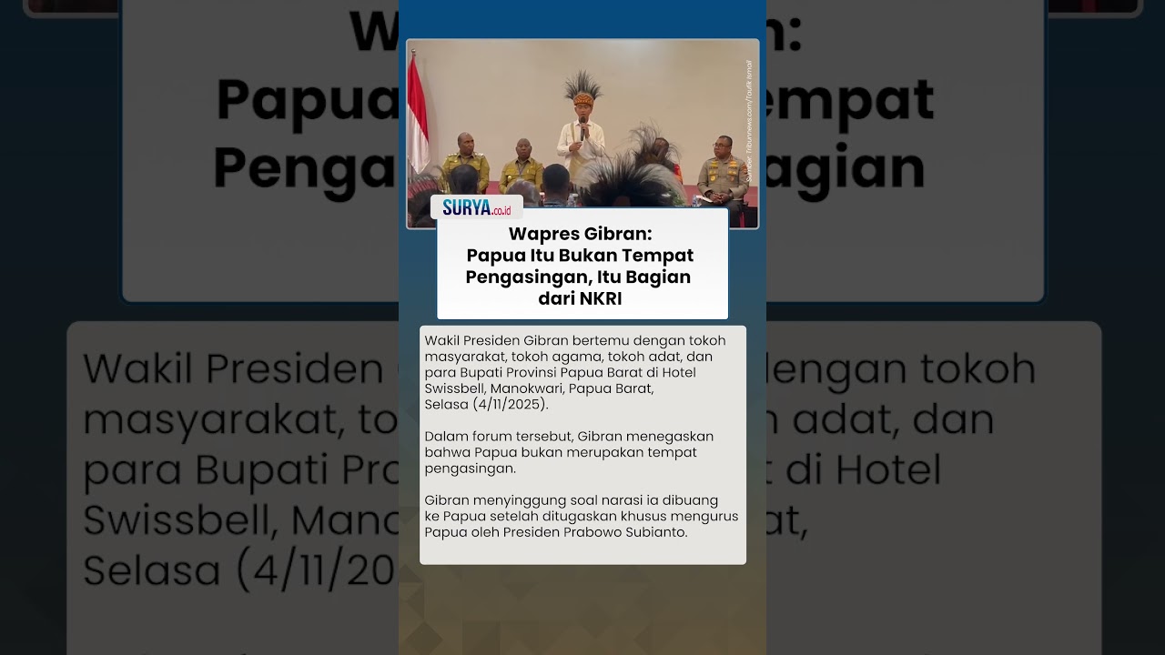 TRIBUN-VIDEO.COM - Wakil Presiden Gibran Rakabuming bertemu dengan tokoh masyarakat, tokoh agama, tokoh adat, dan para Bupati Provinsi Papua Barat di Hotel Swissbell, Manokwari, Papua Barat, Selasa (4/11/2025).