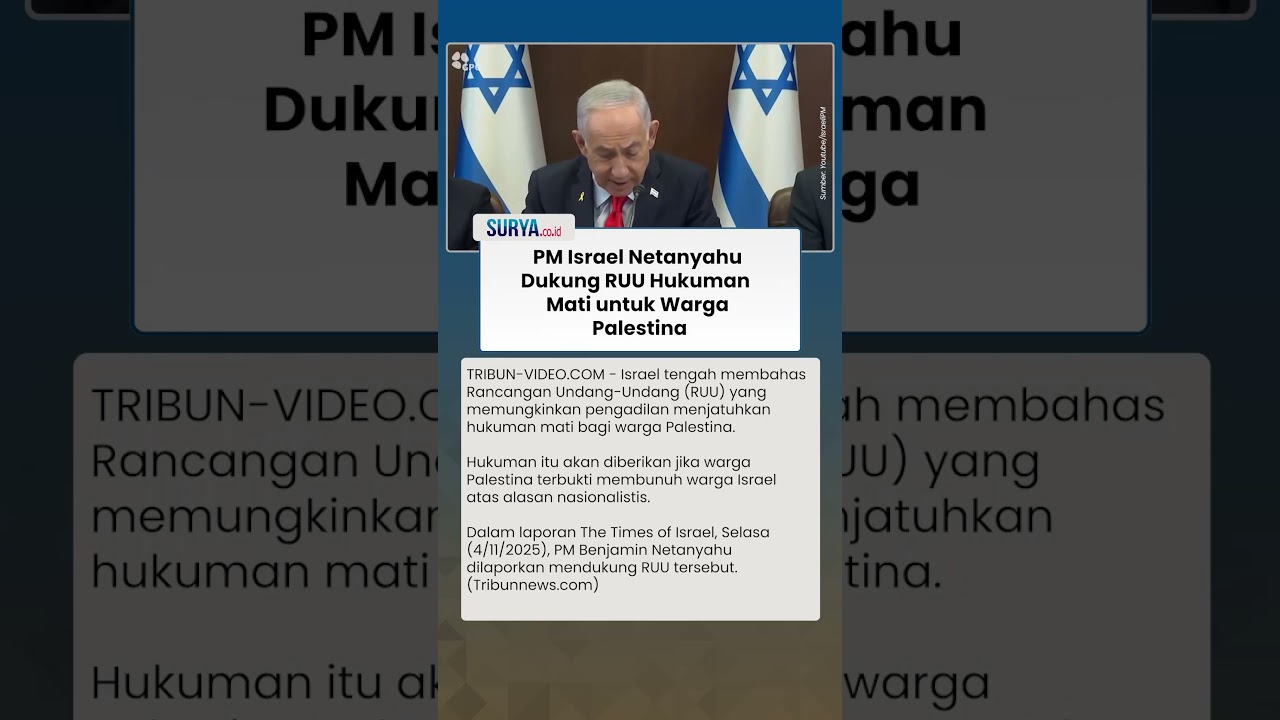 TRIBUN-VIDEO.COM - Israel tengah membahas Rancangan Undang-Undang (RUU) yang memungkinkan pengadilan menjatuhkan hukuman mati bagi warga Palestina.