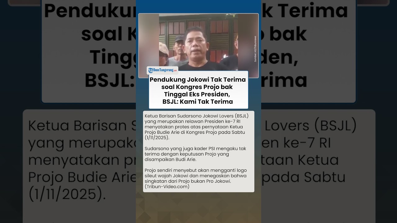 TRIBUN-VIDEO.COM - Ketua Barisan Sudarsono Jokowi Lovers (BSJL) yang merupakan relawan Presiden ke-7 RI menyatakan protes atas pernyataan Ketua Projo Budie Arie di Kongres Projo pada Sabtu (1/11/2025).