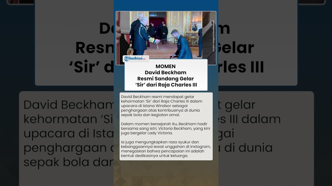 TRIBUN-VIDEO.COM - David Beckham resmi mendapat gelar kehormatan ‘Sir’ dari Raja Charles III dalam upacara di Istana Windsor sebagai penghargaan atas kontribusinya di dunia sepak bola dan kegiatan amal.