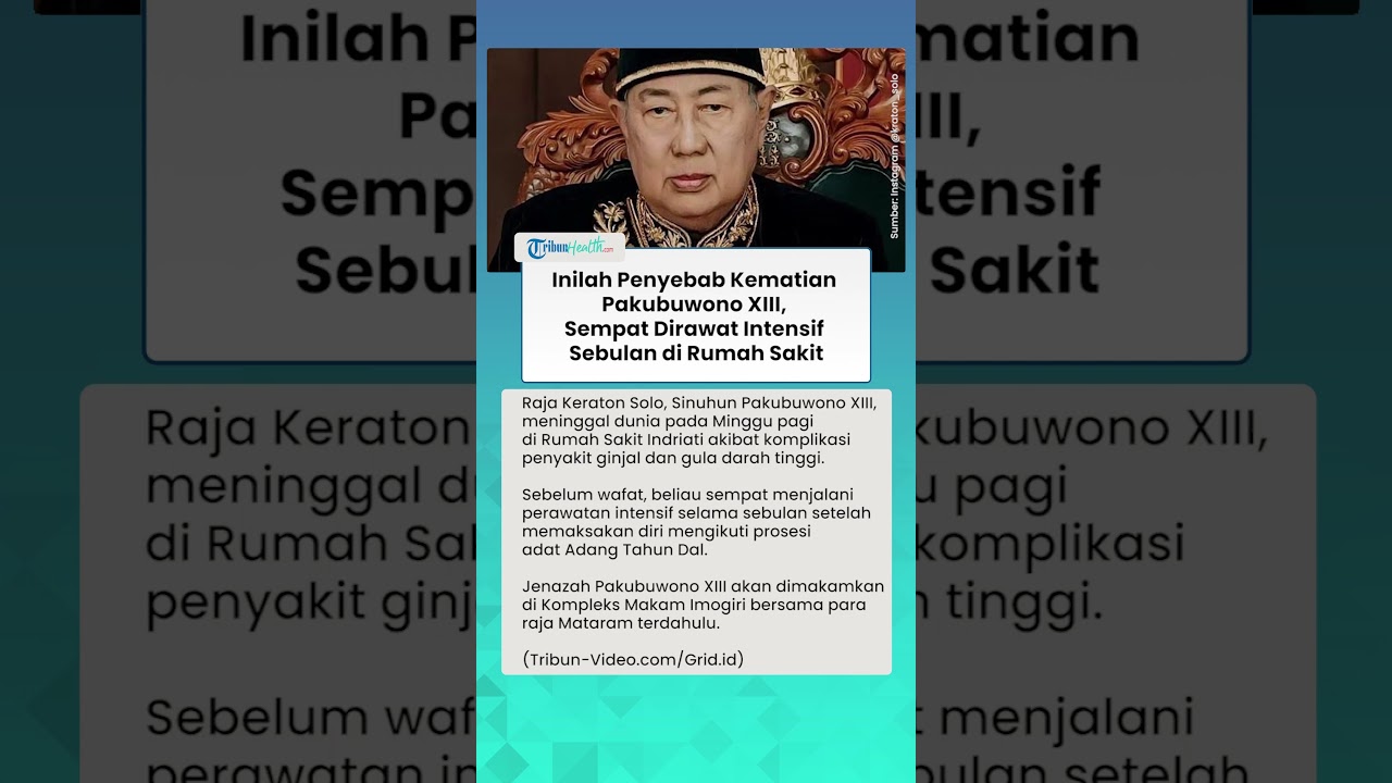 Artikel ini telah tayang di Grid.id dengan judul Penyebab Meninggalnya Pakubuwono XIII Terkuak, Sang Raja Keraton Solo Ternyata Punya Riwayat Penyakit Ini