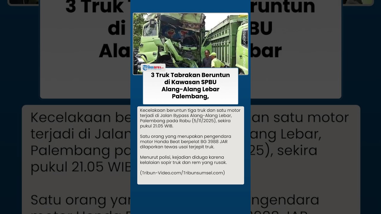 TRIBUN-VIDEO.COM - Kecelakaan beruntun tiga truk dan satu motor terjadi di Jalan Bypass Alang-Alang Lebar, Palembang pada Rabu (5/11/2025), sekira pukul 21.05 WIB.