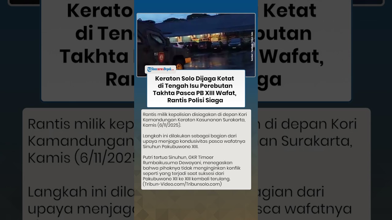 TRIBUN-VIDEO.COM - Sebuah kendaraan taktis (rantis) milik kepolisian disiagakan di depan Kori Kamandungan Keraton Kasunanan Surakarta, Kamis (6/11/2025).