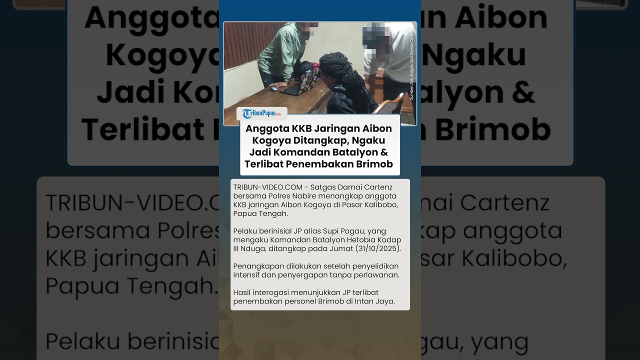 Anggota KKB berinisial JP alias Supi Pogau yang mengaku sebagai Komandan Batalyon Hetobia Kodap III Nduga ditangkap, Jumat (31/10/2025) pukul 15.10 WIT.