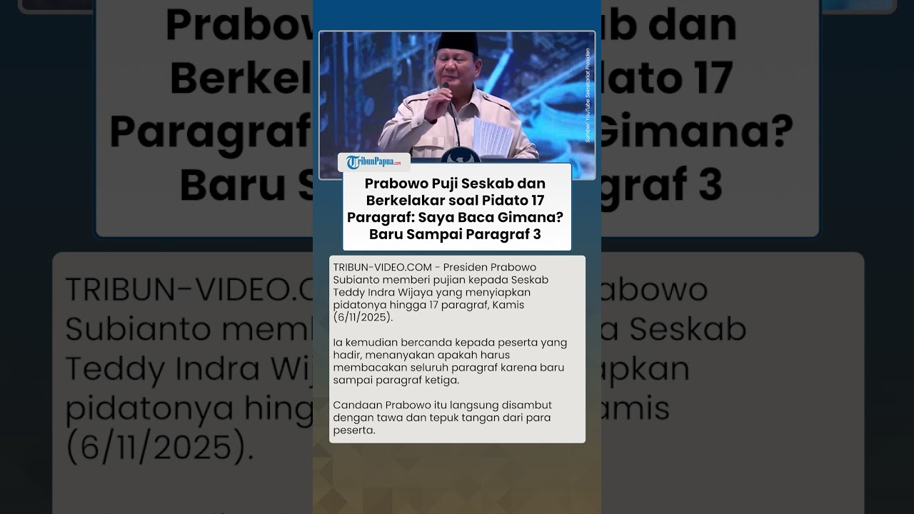 TRIBUN-VIDEO.COM- Presiden Prabowo Subianto memuji Seskab Teddy Indra Wijaya yang telah menyiapkan materi pidatonya sebanyak 17 paragraf.