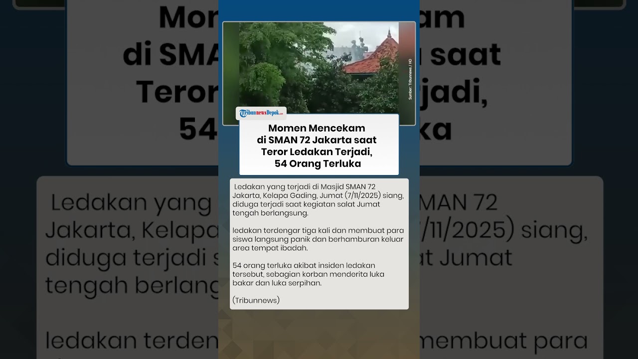 TRIBUN-VIDEO.COM - Ledakan yang terjadi di Masjid SMAN 72 Jakarta, Kelapa Gading, Jumat (7/11/2025) siang, diduga terjadi saat kegiatan salat Jumat tengah berlangsung.