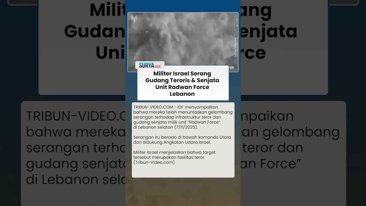 TRIBUN-VIDEO.COM - IDF menyampaikan bahwa mereka telah menuntaskan gelombang serangan terhadap infrastruktur teror dan gudang senjata milik unit “Radwan Force” di Lebanon selatan (7/11/2025).