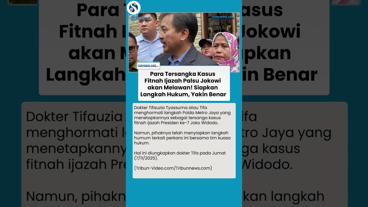 TRIBUN-VIDEO.COM - Dokter Tifauzia Tyassuma atau Tifa menghormati langkah Polda Metro Jaya yang menetapkannya sebagai tersanga kasus fitnah ijazah Presiden ke-7 Joko Widodo.