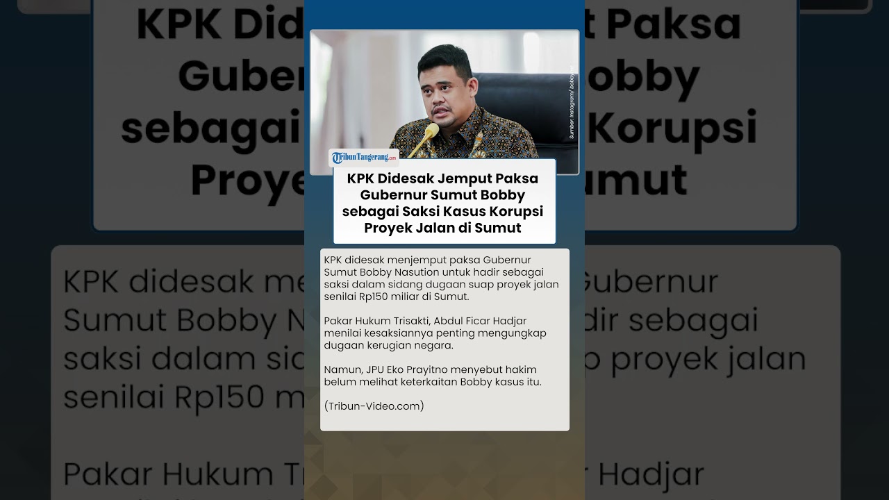 TRIBUN-VIDEO.COM - Komisi Pemberantasan Korupsi (KPK) melalui Jaksa Penuntut Umum (JPU) didesak untuk menjemput paksa Gubernur Sumatera Utara (Gubsu), Bobby Nasution.