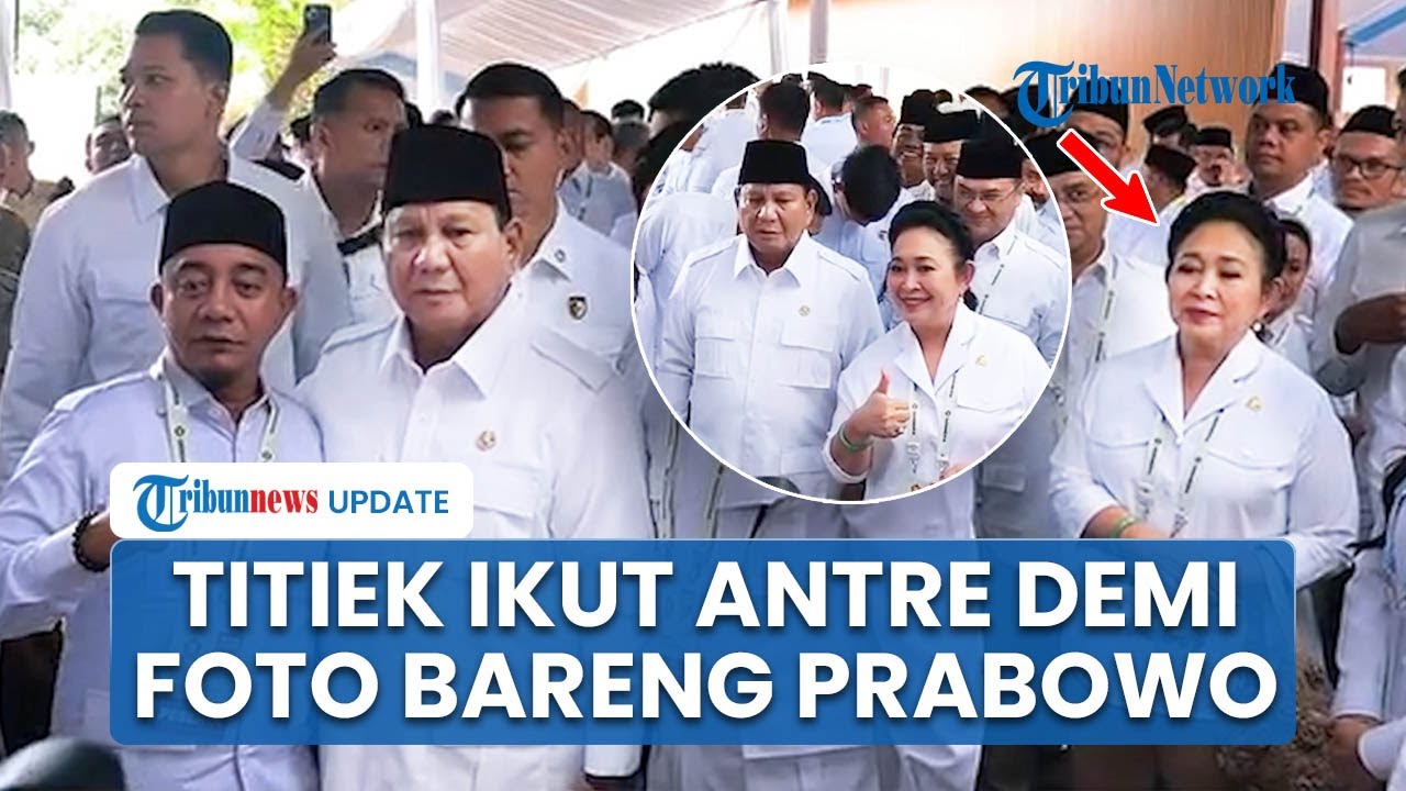 Pasalnya, Titiek tetap ikut mengantre bersama kader Gerindra yang lain demi bisa foto bareng Presiden Prabowo Subianto.