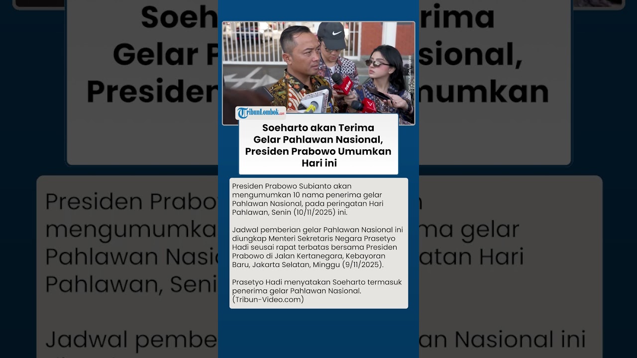 TRIBUN-VIDEO.COM - Presiden Prabowo Subianto akan mengumumkan 10 nama penerima gelar Pahlawan Nasional, pada peringatan Hari Pahlawan, Senin (10/11/2025) ini.