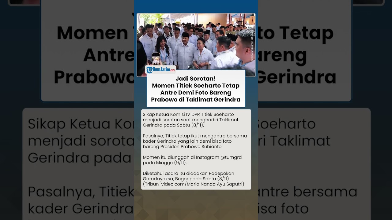 TRIBUN-VIDEO.COM - Sikap Ketua Komisi IV DPR Titiek Soeharto menjadi sorotan saat menghadiri Taklimat Gerindra pada Sabtu (8/11).