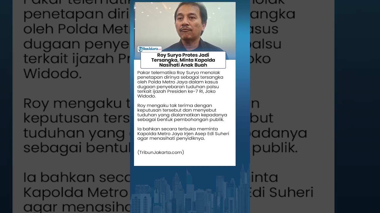 TRIBUN-VIDEO.COM - Pakar telematika Roy Suryo menolak penetapan dirinya sebagai tersangka oleh Polda Metro Jaya dalam kasus dugaan penyebaran tuduhan palsu terkait ijazah Presiden ke-7 RI, Joko Widodo.