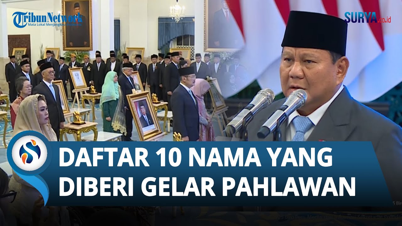 TRIBUN-VIDEO.COM - Presiden Prabowo Subianto memberikan gelar pahlawan nasional kepada 10 tokoh di Istana Negara, Jakarta pada Senin (10/11/2025).