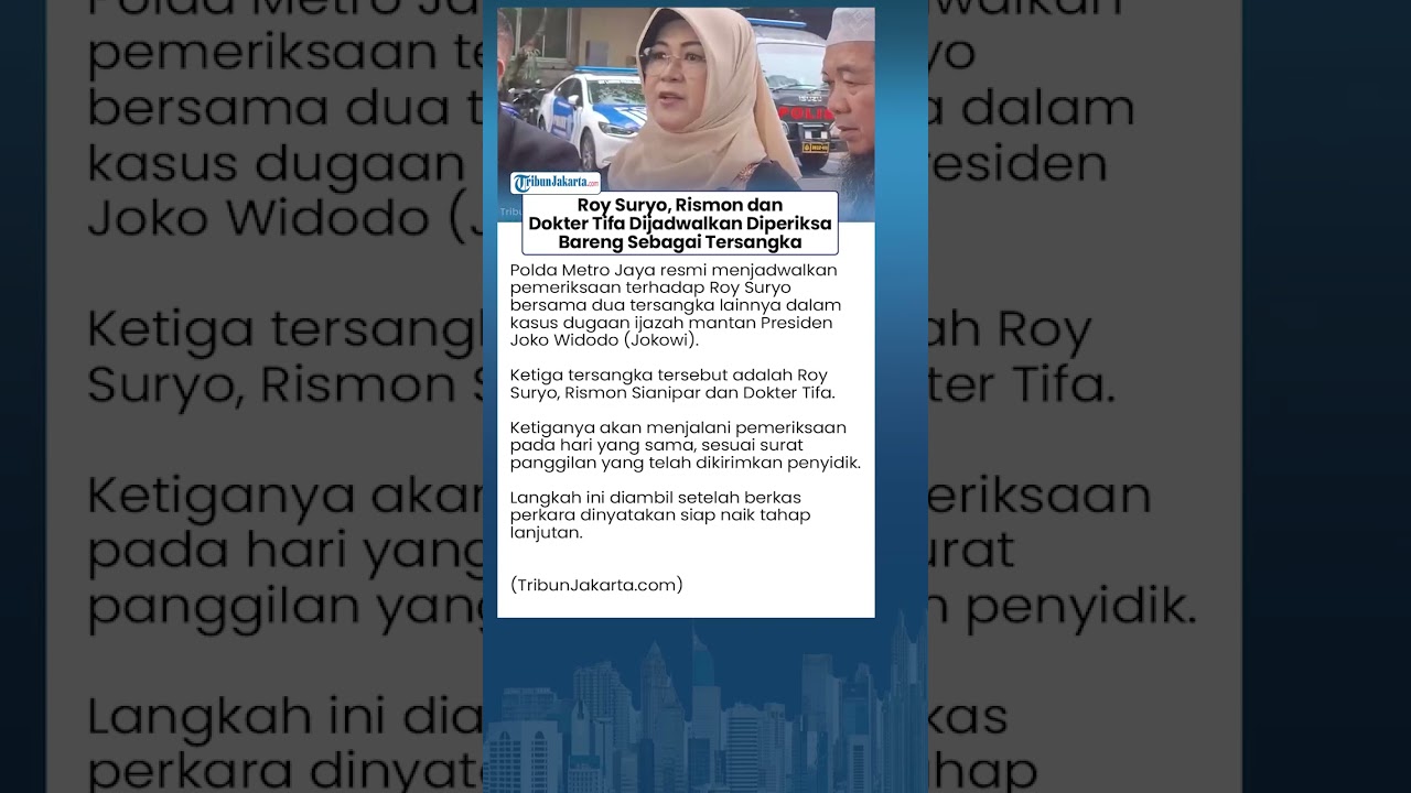 TRIBUN-VIDEO.COM - Polda Metro Jaya resmi menjadwalkan pemeriksaan terhadap Roy Suryo bersama dua tersangka lainnya dalam kasus dugaan ijazah mantan Presiden Joko Widodo (Jokowi).