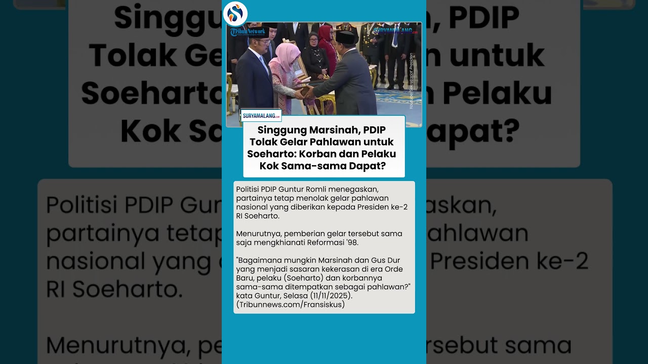 TRIBUN-VIDEO.COM - Politisi PDIP Guntur Romli menegaskan, partainya tetap menolak gelar pahlawan nasional yang diberikan kepada Presiden ke-2 RI Soeharto.