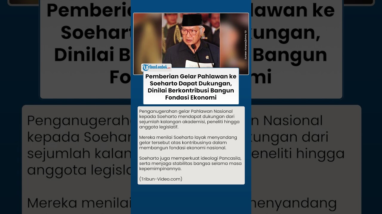 TRIBUN-VIDEO.COM - Penganugerahan gelar Pahlawan Nasional kepada Soeharto mendapat dukungan dari sejumlah kalangan akademisi, peneliti hingga anggota legislatif.