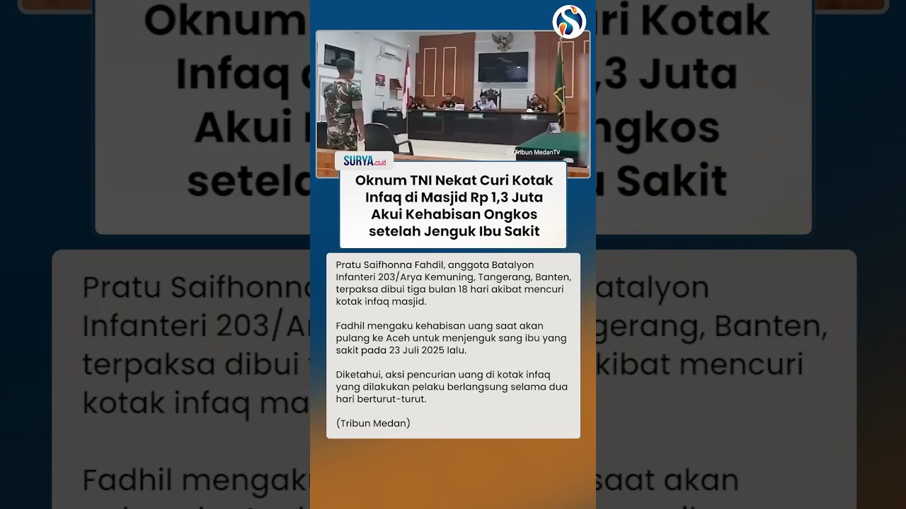 TERNYATA INI ALASAN PILU Oknum TNI Nekat Curi Kotak Infaq Masjid Rp 1,3 Juta