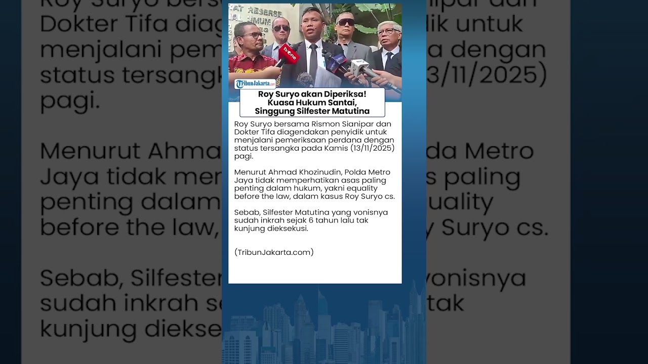 TRIBUN-VIDEO.COM - Roy Suryo bersama Rismon Sianipar dan Dokter Tifa diagendakan penyidik untuk menjalani pemeriksaan perdana dengan status tersangka pada Kamis (13/11/2025) pagi.