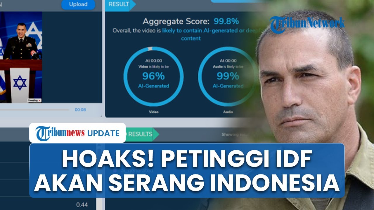 Dari hasil identifikasi tools Hive Moderation, video jenderal militer Israel memperingatkan Indonesia 99,8% dihasilkan dari AI.