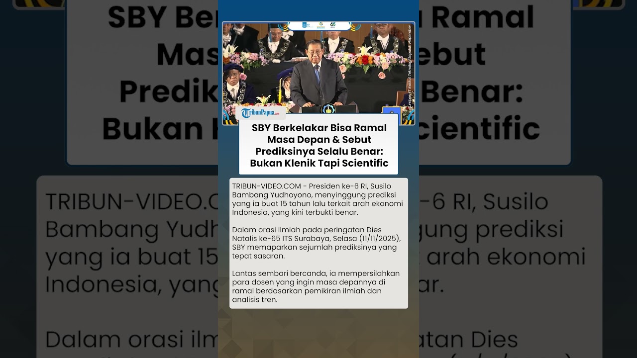 TRIBUN-VIDEO.COM- Presiden ke-6 RI Susilo Bambang Yudhoyono (SBY) menyinggung soal prediksinya 15 tahun lalu tentang arah ekonomi Indonesia yang kini terbukti benar.