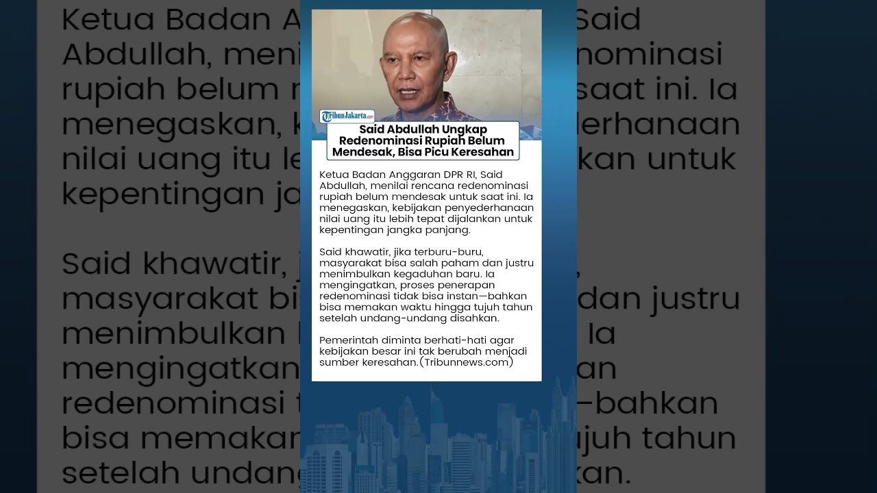 TRIBUN-VIDEO.COM - Ketua Badan Anggaran (Banggar) DPR RI Said Abdullah, merespons rencana pemerintah melakukan redenominasi rupiah.